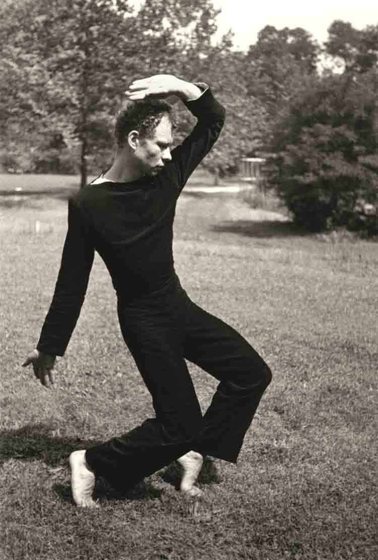Hazel Larsen Archer, Merce Cunningham Dancing, c. 1952-53, gelatin silver print, 8 ¾ x 5 7/8 inches. Estate of Hazel Larsen Archer and Black Mountain College Museum and Arts Center.