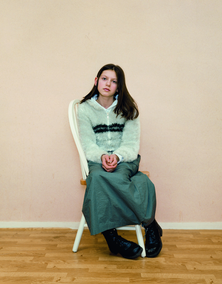 Rineke Dijkstra, Almerisa, Leidschendam, The Netherlands, March 19, 2000, 2000. Chromogenic color print. 24 3/8 x 20 1/2 inches (61.9 x 52.1 cm). Institute of Contemporary Art/Boston. Gift of Sandra and Gerald Fineberg. Courtesy the artist and Marian Goodman Gallery. © Rineke Dijkstra