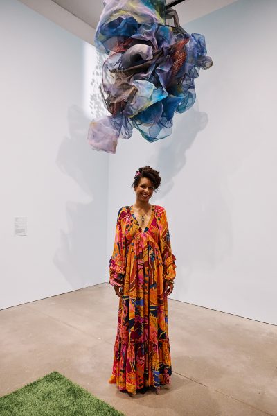 Cicely Carew wields the formal, material, and sculptural aspects of painting to evoke feelings of radical joy, hope, and liberation. Her works explore the fleeting magic of the present through vibrant color, rebellious mark-making, sweeping gestures, and references to the terrestrial and cosmic worlds. In addition to group exhibitions and commissions by Now + There at the Prudential Center in Boston, she has had solo exhibitions at the Fitchburg Art Museum, the Commons in Provincetown, Northeastern University, and Simmons University. She is the recipient of the 2021 St. Botolph Club Foundation Emerging Artist Award, an Artful Seeds Fellowship, and a Sustainable Arts Foundation Award. Her work is in the collections of Fidelity, Simmons University, Northeastern University, the Cambridge Arts Council, and the Federal Reserve of Boston. In addition to her studio practice, she is a wellness coach and educator, having served as the 2021–22 artist in residence at Shady Hill School in Cambridge, as well as teaching workshops for the New Art Center in Newton and screen printing for Lesley University. Carew earned a BFA from Massachusetts College of Art and Design and an MFA from Lesley University’s College of Art + Design. She resides with her son in Cambridge.