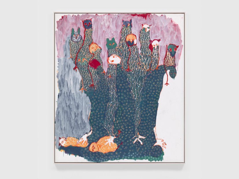 The work of Portia Zvavahera (b. 1985, Harare, Zimbabwe) starts with dreams. From harrowing nightmares to protective comforts, Zvavahera’s dreams are sources for her transcendent painting practice she compares to an act of worship. “Transferring the energy of my dreams into my paintings has helped me heal myself,” the artist notes, “and remove the negative energy from my nightmares.” Throughout her work, Zvavahera engages deeply with the Indigenous Shona and African Pentecostal faith traditions in which she was raised, illuminating the centrality of spirits and revelation to both belief systems. The artist frequently titles her artworks in Shona, the language in which she thinks, dreams, and prays. This exhibition, Zvavahera’s first solo museum exhibition in the United States, features a suite of colorful paintings centered on the animals that populate her pictorial world, where bulls, snakes, rats, and owls represent mysterious forces and potential threats. Zvavahera’s painting practice not only makes visible the hidden battles of her dreams, it is a critical front on which these battles are waged.