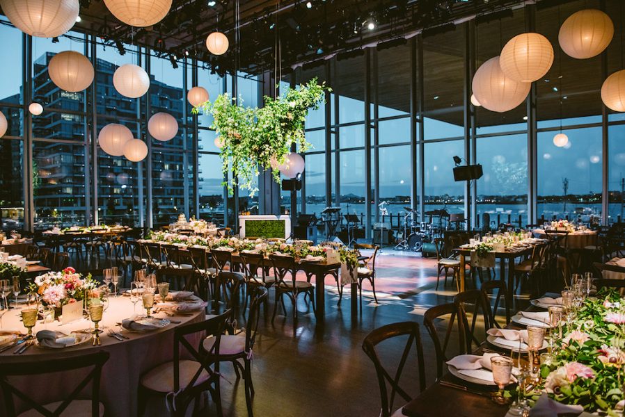 Bounded on the west and north sides by towering glass walls overlooking Boston’s skyline, the east side displays Sandra and Gerald Fineberg Art Wall, featuring large-scale works by leading contemporary artists. This space provides a dramatic setting for any event.