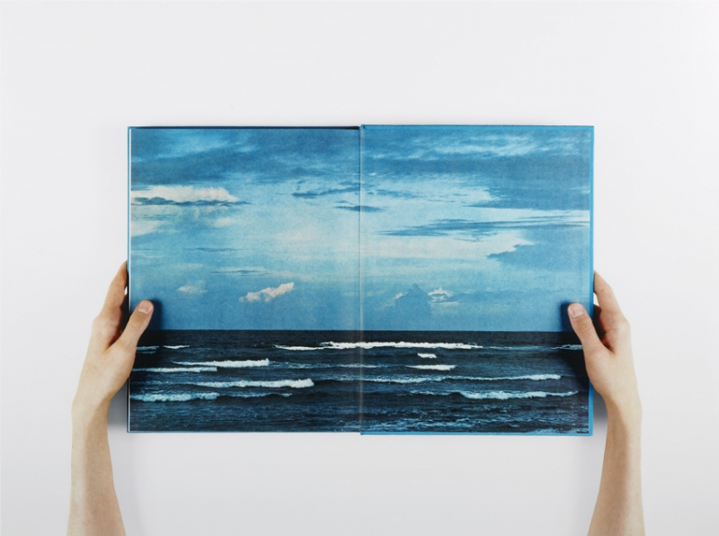 The series Open Book presents photographic tableaux of anonymous hands holding open books of photographs against a white background. In Open Book #3 (Island Wilderness), endpapers show a serene ocean view, the image reminiscent of a stock photograph that might be used for calendars or postcards. The crease at the book’s spine and the volume of its underlying pages slightly misalign the seascape. Viewers are acutely aware of looking at an image of someone looking at an image. As Collier comments, “there is a kind of doubling at play, where the real subject of the work is the activity of looking.” Playfully voyeuristic, the photograph also highlights the unbridgeable distance created by representation.