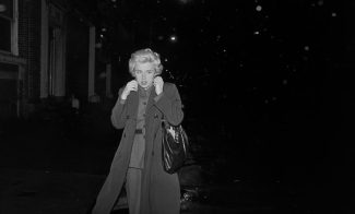 The first six prints in the series were shot in Sherman’s New York apartment and reveal snippets of the domestic life of an imagined blonde movie star. Untitled Film Still #3 shows a woman wearing an apron standing over the kitchen sink, surrounded by ordinary housewares: a bottle of dish soap and drying rack, a spice jar on a shelf, and, in the foreground, an open container of salt and the handle of a stovetop pot. Captured while pausing during a domestic activity, the woman stares over her shoulder, her right hand wrapped around her stomach. Set in the banal environment of a cramped apartment kitchen, the scene assumes a tension as the figure’s gaze suggests an unseen force in an unknown narrative. The title’s reference to the movie industry lends a voyeuristic quality to this glimpse into the private life of a female character who has yet to discover herself.