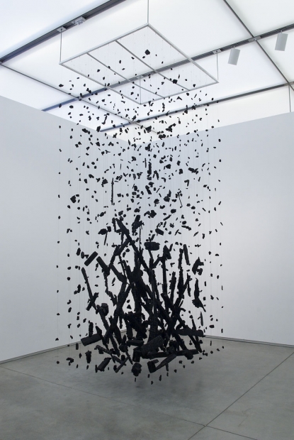 Hanging Fire (Suspected Arson) is an outstanding example of Parker’s suspended sculptures. This major installation piece is constructed from the charred residue of an actual case of suspected arson. Here, Parker uses the materials as found, without transforming their physical nature. Yet in her hands, they constitute a spectacular explosion of form in space as the once-glowing, now-blackened embers are precisely hung to create a forest of charcoal fragments. Parker’s sculpture can be considered formally in relation to the rich tradition of recent British sculpture, by artists ranging from Richard Long to Tony Cragg. It also captures the forensic fascination evident in so much of Parker’s work, evoking through its title the malicious intent of an arsonist, making her sculpture the perfect vehicle for both dazzling visual experience and vivid imaginings.