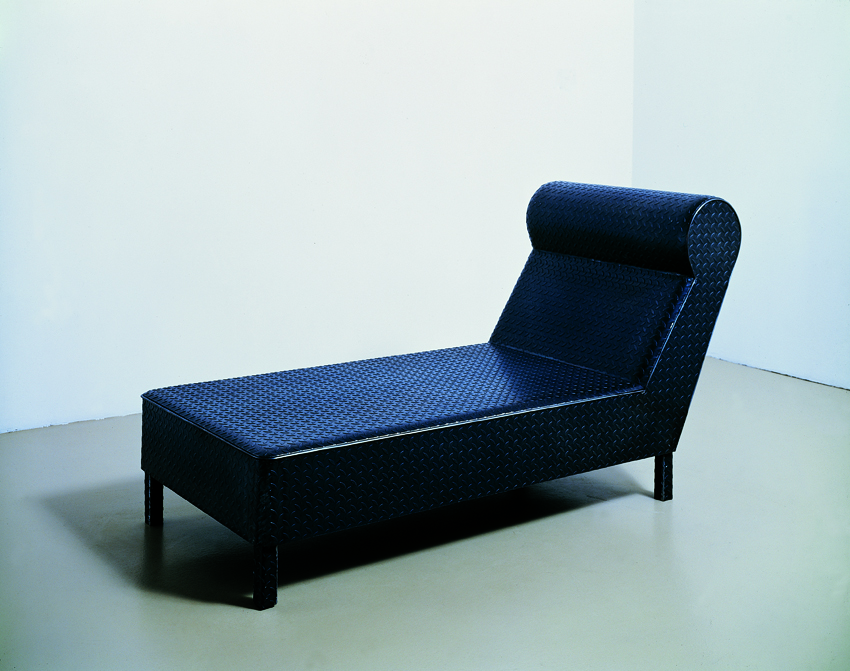 This dynamic is at play in Dormeuse, a chaise longue made with steel tread plate. The chaise has been a key prop throughout art history, appearing in many well-known paintings—notably Jacques-Louis David’s Portrait de Mme Récamier (1800)—as a symbol of feminine leisure, relaxation, and economic privilege. Hatoum removes these associations from her sculpture, as well as the recumbent figure. While viewers cannot “complete” the work by lounging on it, it is apparent that it is not a place of rest and comfort. Its unforgiving surface paints a cold, hard portrait of domesticity. Hatoum transforms the chaise into the kind of sturdy utilitarian fixture that could be found in a subway station. The sculpture is archetypal Mona Hatoum, as it elegantly and subtly unravels the stereotype of the home as a refuge.