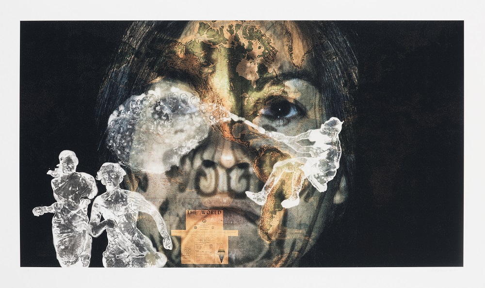 Echoing the artist’s early training and expert draftsmanship, the imagery in the eight prints in the ICA/Boston’s collection originate from the immersive multimedia work, In Search of Vanished Blood. The installation features a strong female protagonist named Cassandra, a figure of Greek mythology whose prophecies—first gifted and later cursed by the spurned Apollo—were disbelieved by the fated Agamemnon; and is inspired by East German writer and critic Christa Wolf’s 1984 novel Cassandra, about a struggling female artist and visionary. Like this installation, the prints weave together mythology, historical events, and literary references to address female suffering during and after partition. Malani hand draws directly onto the prints in ghostly white ink, analogous to the mesmerizing moving images in the original installation, and compiles a range of complex narratives bringing together the past and present.