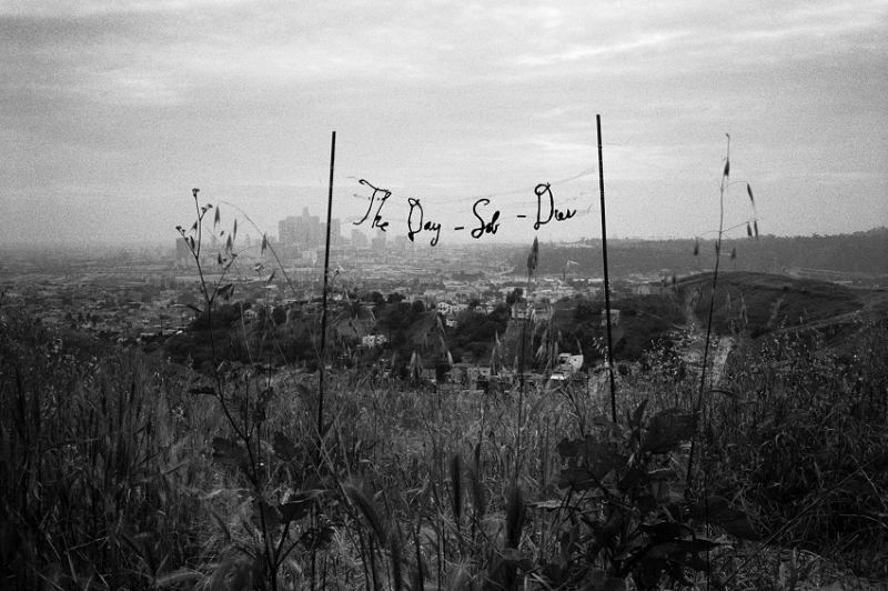 In The Day–Sob–Dies, Ebner has assembled the titular phrase in a lilting, cursive script and then suspended it between two thin sticks in an overgrown field at the outskirts of Los Angeles. The “Sob” positioned between dashes might mean the intrusion of an outburst in the phrase, but it could also be read as the acronym for “son of a bitch.” As with most of Ebner’s texts, the exact meaning is cryptic but clearly full of significance, especially with the phrase, alluding to the margin between life and death, situated in what appears to be the scrubby outskirts of a city.