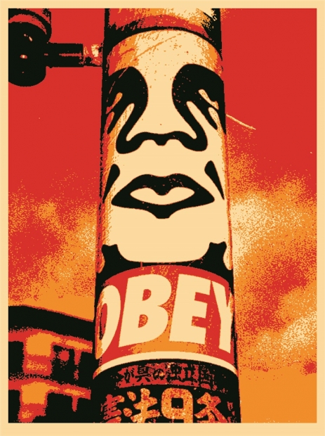 Shepard Fairey, Obey Pole, 2001. Screenprint. 24 x 18 inches (61 x 45.7 cm). Institute of Contemporary Art/Boston. Acquired through the generosity of Beth and Anthony Terrana, Sandra and Gerald S. Fineberg, Fotene Demoulas, and the artist. Courtesy the artist and Obey Giant Art © Shepard Fairey