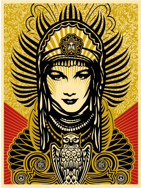 Shepard Fairey, Peace Goddess, 2007. Screenprint. 24 x 18 inches (61 x 45.7 cm). Institute of Contemporary Art/Boston. Acquired through the generosity of Beth and Anthony Terrana, Sandra and Gerald S. Fineberg, Fotene Demoulas, and the artist. Courtesy the artist and Obey Giant Art © Shepard Fairey