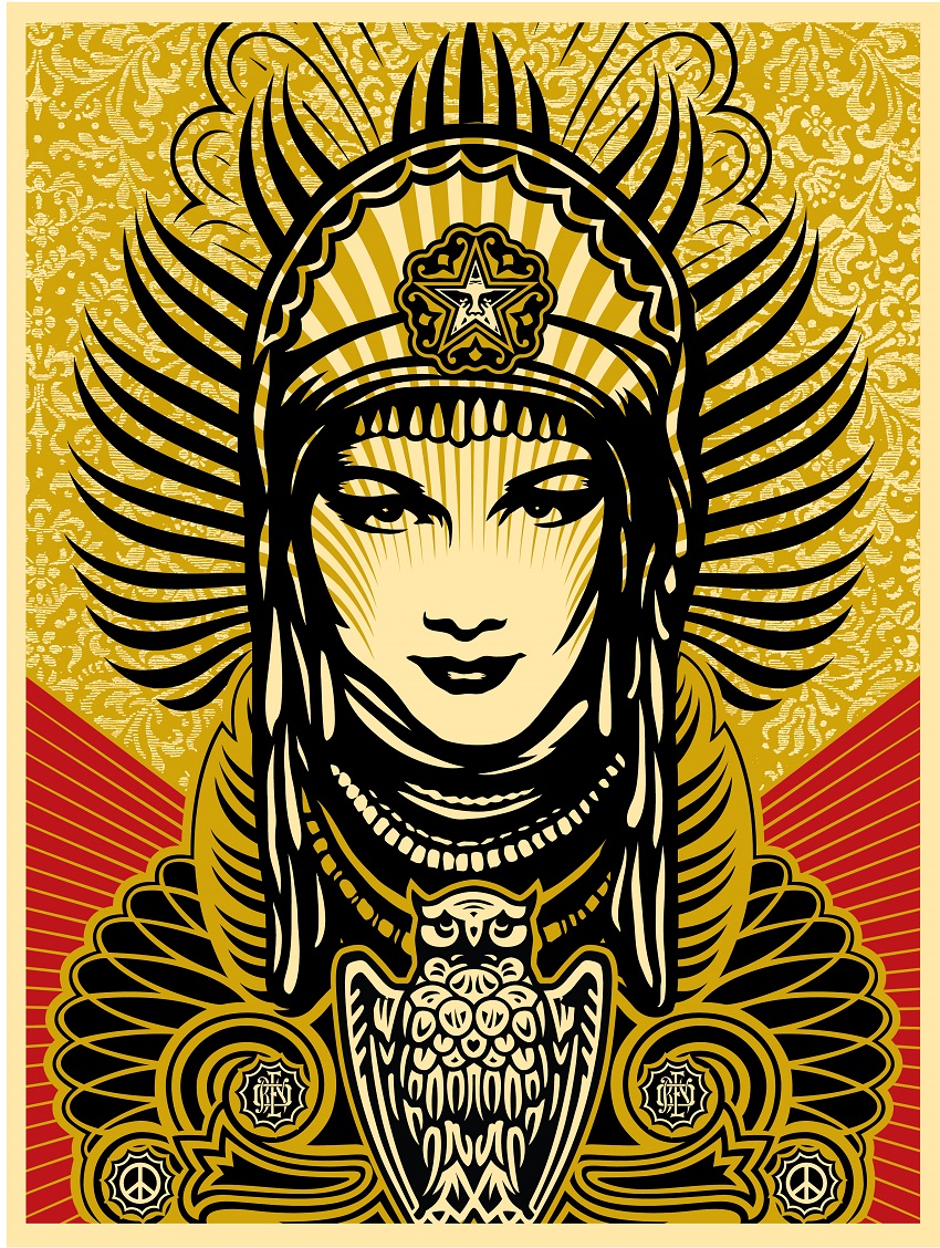Shepard Fairey, Peace Goddess, 2007. Screenprint. 24 x 18 inches (61 x 45.7 cm). Institute of Contemporary Art/Boston. Acquired through the generosity of Beth and Anthony Terrana, Sandra and Gerald S. Fineberg, Fotene Demoulas, and the artist. Courtesy the artist and Obey Giant Art © Shepard Fairey