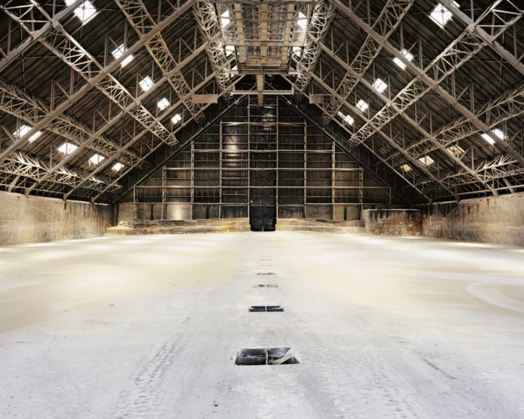 Zineb Sedira (Born 1963 in Paris) is a London-based, Franco-Algerian artist who explores universal themes of identity, mobility, memory, and humans’ relation to geography. Informed by her personal experience and background, Sedira uses photography, video, and installation to evoke questions about collective and individual memories and to shed light on past and present struggles of liberation and postcolonial movements. Interested in the sugar trade, its geographies, and the larger economic and political landscape behind this commodity, Sedira produced a series of photographs titled Sugar Routes tracing the global journey of sugar from locations throughout the world to the sugar silos of Saint Louis Sucre in France. From this series, Sugar Silo I & II is a diptych showing, on the left, an enormous mountain of cane sugar in a warehouse, and on the right, that same warehouse empty of sugar. The two photographs chart the collection and movement of sugar as a global commodity today. Algeria, a former French colony, is the largest sugar refiner in North Africa and its production has deep ties to French corporations. Drawing on the silenced past of Algeria, Sedira’s work visualizes the ongoing extraction of resources from the Global South for consumption by countries and economies of the North. This documentation of the global sugar trade in Sugar Silo I & II offers a poetic meditation on presence and absence as these are rooted in history and shape larger issues of migration, identity, and geography.