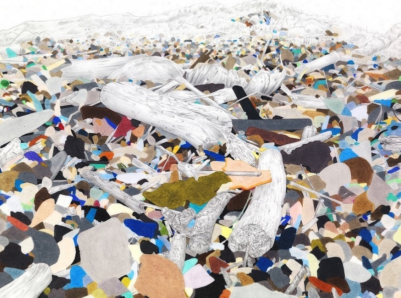 Over the last decade, Boston-based artist Evelyn Rydz has focused her work on contemporary coastlines and ways our everyday lives impact are impacted by changing oceans. Exploring perceptions of scale, her work draws connections between everyday actions and lasting impacts, fleeting and geologic time, unstable and fixed conditions. The artist’s work has been exhibited the Palmer Art Museum, Penn State University (forthcoming); Museum of Fine Arts, Boston; Tufts University Art Gallery; a Smithsonian Traveling Exhibition at the Anchorage Museum, Alaska, USC Fisher Museum, L.A., and CDC Museum, Atlanta; the Institute of Contemporary Art, Boston; DeCordova Museum and Sculpture Park; Maseeh Hall, MIT, Cambridge; Julie Saul Gallery, NY; El Parque Cultural del Caribe, Barranquilla, Colombia; and Brattleboro Museum, Vermont. Rydz has led community art projects as visiting artist at the MFA, Boston; the ICA, Boston; and MOCA, North Miami. She is currently an Associate Professor at Massachusetts College of Art and Design.