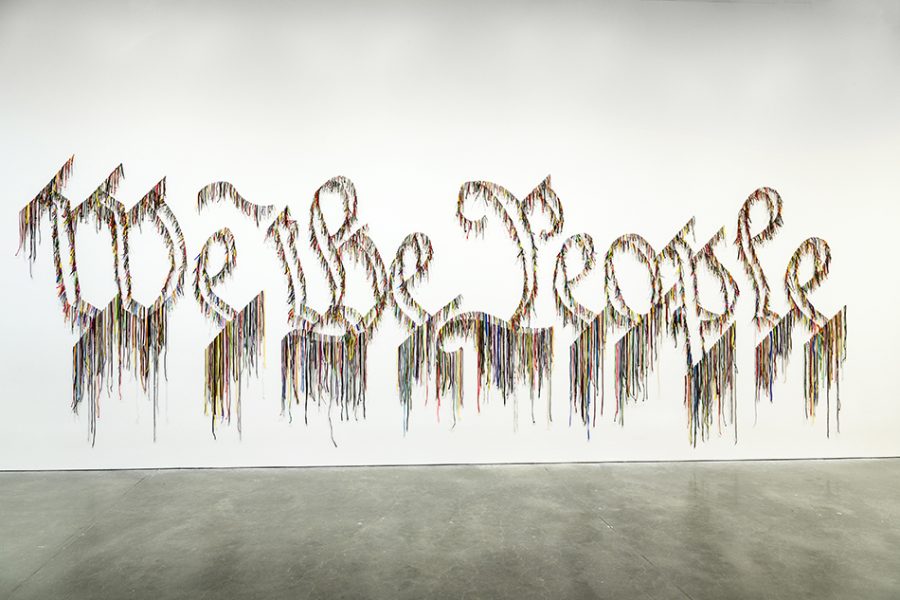 Watch this video of us with artist Nari Ward installing his work We the People (made of hundreds of shoelaces). Find some shoelaces. Make something that expresses how you feel about where you live.