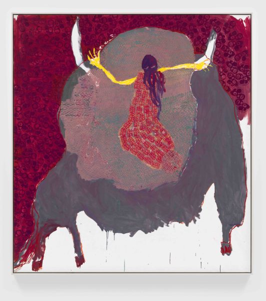 Portia Zvavahera: Hidden Battles/Hondo dzakavanzika includes a selection of recent and new works that focus on the animals that populate the artist’s dreams and thus her pictorial world, revealing the significant and symbolic role animals play. A single powerful dream can produce several distinct and evocative paintings. Throughout the work, Zvavahera engages with Zimbabwean figurative painting as well as the Indigenous Shona and African Pentecostal faith traditions in which she was raised. Her works navigate a broad range of references, from the Shona belief that eagles travel between heaven and earth carrying messages, to the symbolic role of the snake in the biblical story of Adam and Eve, to the flattened pictorial field of modern art.