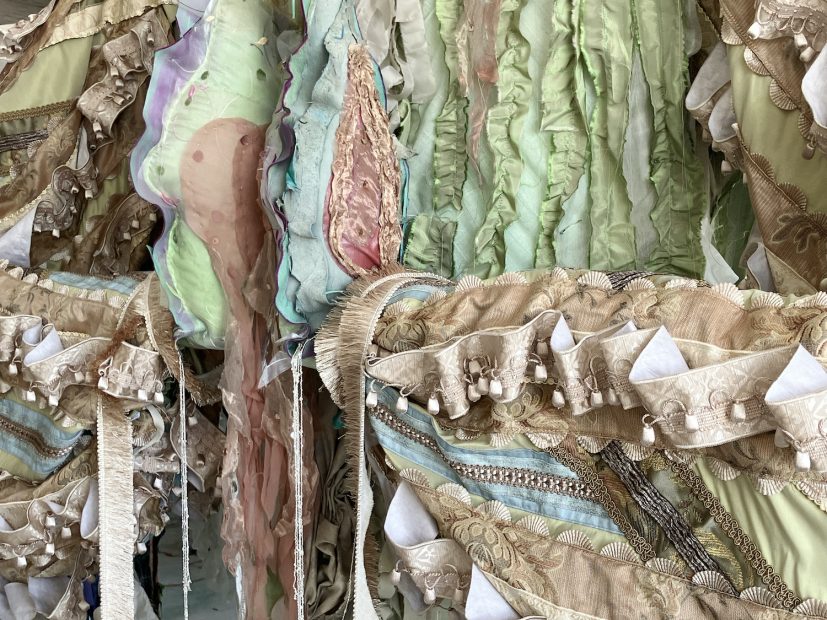 “Lewis harnesses the beauty and power carried by found materials in her monumental soft sculptures,” said De Blois. “Her sculptures are alive with the energy of previously worn found fabrics and animated through every meticulous gesture. They are intensely personal, yet open to a world of associations and meanings.”