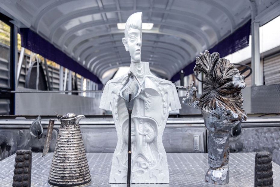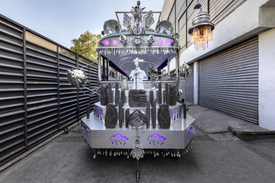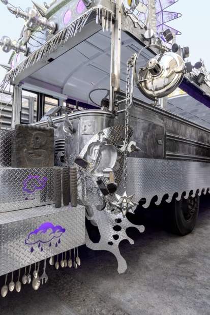 (Boston, MA—May 4, 2023) The Institute of Contemporary Art/Boston (ICA) will open the next season of the Watershed with a monumental installation by Guadalupe Maravilla (b. 1976, El Salvador). In Guadalupe Maravilla: Mariposa Relámpago, Maravilla expands on the Disease Thrower series with a newly commissioned sculpture: Mariposa Relámpago (Lightning Butterfly), the artist’s largest artwork to date. Once a school bus in the United States, Mariposa Relámpago had a second life as a transportation bus in El Salvador, and has now been transformed into a vibrational healing instrument by the artist. Drawing on his personal story of migration, illness, and recovery, Maravilla combines sculpture, painting, performative acts, and installation to create works grounded in activism and healing. The exhibition will also feature several additional artworks including: 8 new retablo paintings, Migratory Birds Riding the Celestial Serpent, 2021; Disease Thrower #0, #00, and #14, and a site-specific Tripa Chuca wall drawing, made in collaboration with an East Boston-based resident. On view May 25—September 4, 2023, Guadalupe Maravilla: Mariposa Relámpago is organized by Ruth Erickson, Mannion Family Senior Curator, with Yutong Shi, Curatorial Assistant.