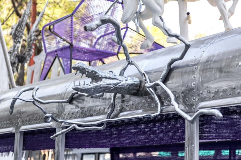 “Maravilla’s installations are amalgamations of animals, spirits, plants, and gongs that create multi-sensory experiences and nurture collective narratives of perseverance and humanity. His work is informed by his own experience recovering from cancer as an adult—an illness he links to the trauma he experienced as an unaccompanied minor migrating from El Salvador and the stresses of being undocumented,” said Erickson.