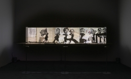 The wide-ranging, interdisciplinary work of William Kentridge (b. 1955, Johannesburg, South Africa) examines the prolonged effects of settler colonialism and the apartheid system in South Africa. Through drawing, performance, film, and opera, Kentridge recomposes historical narratives and proposes new understandings of the past, emphasizing, as he says, “what we’ve chosen not to remember.” The ICA presents the U.S. museum premiere of KABOOM! (2018), a recent major acquisition and room-filling multimedia installation. KABOOM! tells the story of the two million African porters conscripted into service for German, British, and French colonial powers during World War I. Set to a rousing, orchestral score co-composed by Philip Miller and Thuthuka Sibisi, KABOOM! employs collage, drawing, and animation on repurposed archival documents to embody at gallery scale the theatrical intensity of the artist’s full-scale production of The Head & the Load (2018), a work whose title references the Ghanaian proverb, “The head and the load are the troubles of the neck.” A way of speaking back to the incomplete story of colonialism and exploitative labor systems, KABOOM! envelops the gallery in a visual landscape that traverses memory and narrative, revealing history to be a fragmented and authorless relationship to the past. Organized by Jeffrey De Blois, Assistant Curator and Publications Manager, with Anni Pullagura, Curatorial Assistant.