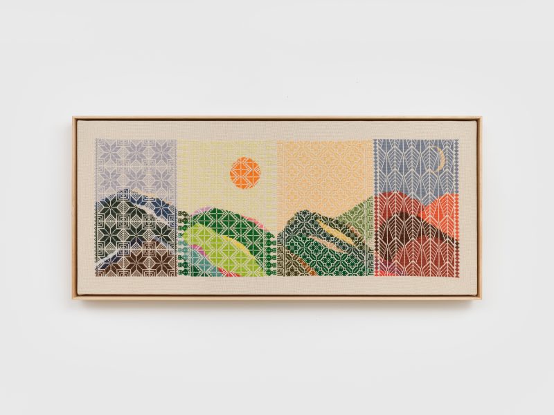 Jordan Nassar’s solo exhibition—his first in Boston—presents a selection of his intricate embroidered and mixed media works. Nassar (b. 1985 in New York) draws on traditional Palestinian craft techniques to investigate ideas of home, land, and memory. His work, which he creates in collaboration with Palestinian embroiders and craftspersons, combines geometric patterns with abstracted landscapes, imbued, in the artist’s words, “with yearning, while hopeful and beautiful.” Through complex patterning and a unique attendance to form and color, the painterly aesthetic of Nassar’s embroidery allows the artist to explore relationships between craft and history in new contemporary dialogues. Organized by Anni Pullagura, Curatorial Assistant.