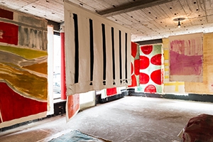 Vivian Suter (b. 1949, Buenos Aires, Argentina) works in close partnership with the natural environment surrounding her home and studio in Panajachel, Guatemala. The artist’s first Boston exhibition will feature a single installation filling the galleries with a canopy of color and shapes evocative of the lush setting. Her method often involves moving her canvases between the indoors and outdoors and exposing them to the climate in order to allow nature to comingle with her broad swaths of painted, vivid color. The mud and rain, light through the trees, and animals in the forest work in concert with Suter’s gestural compositions, which are inspired by the surrounding vegetation and landscape. Her installation of layered and suspended canvases invites visitors to discover her unique dialogue with the imagined and natural worlds. This exhibition is organized by Ruth Erickson, Mannion Family Curator.