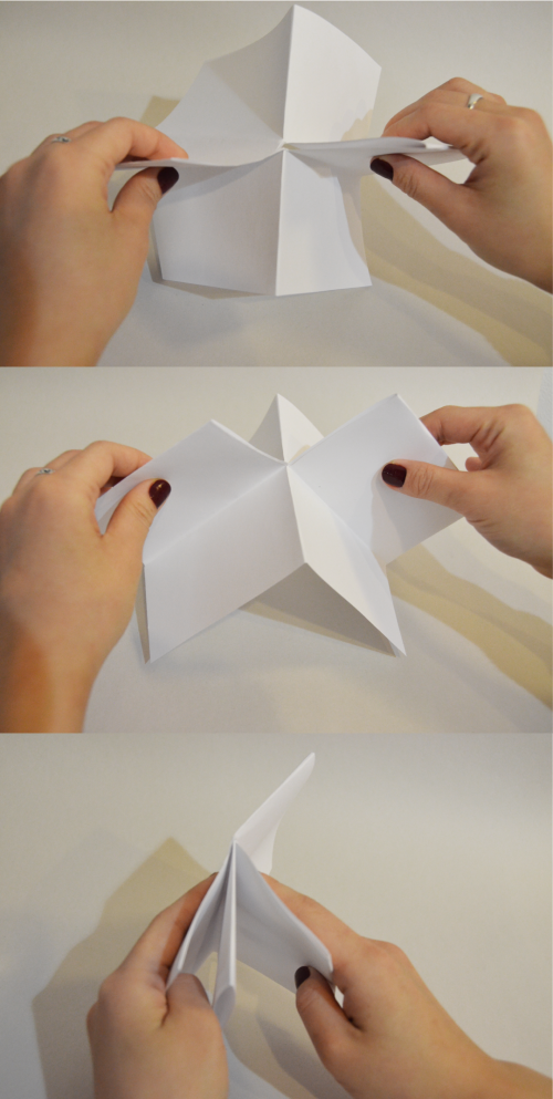 1. Fold your paper in half, then half again, and then half again. When you open your paper, you should have eight equal sections.