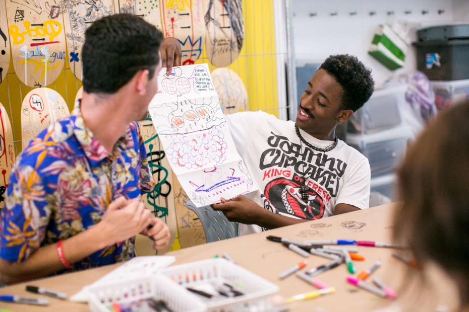 Non-school teen arts education programs create spaces where teens can express the many facets of their growing identities. They can try on the hats of their personalities and learn from their peers. They learn who they want to be and how to be in a space free of the judgments of school teachers or guardians. In museum settings, teens are often valued for the very idiosyncrasies that can make learning in a traditional school environment challenging. A teen reflected on this at the 2016 National Teen Convening at ICA/Boston: