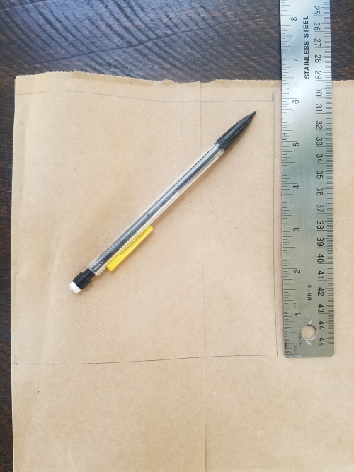 Download and print the pop-up template. Don’t have a printer? Make your own template with a paper bag! Measure and cut a 6” x 6” square piece of paper (could be from a brown paper bag like pictured). With a pencil, lightly label one side “BACK.”