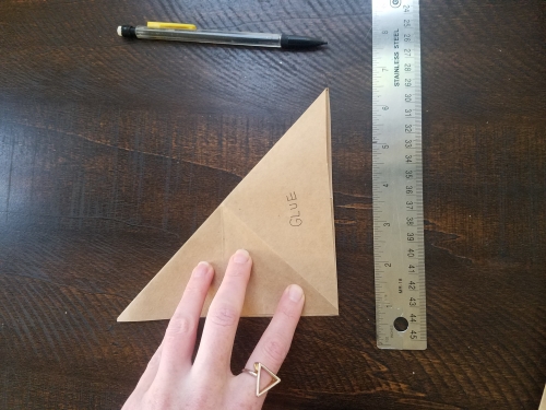Open the square. Bring the middle of each outside edge up and towards each other to create a folded triangle. This will create the pop-up effect in your card.