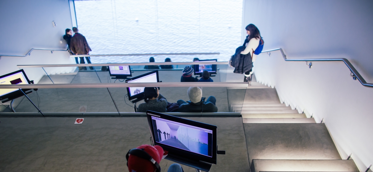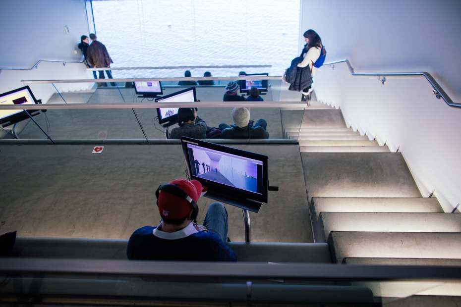 Take in the art on view in our galleries. Explore our building—and use it as a giant viewing device! Work with your friends and family to construct small-scale architectural models of your own design (Tuesday to Thursday only) or participate in our NEW Bank of America Art Lab installation created in partnership with a Boston-based artist Susannah Lawrence.