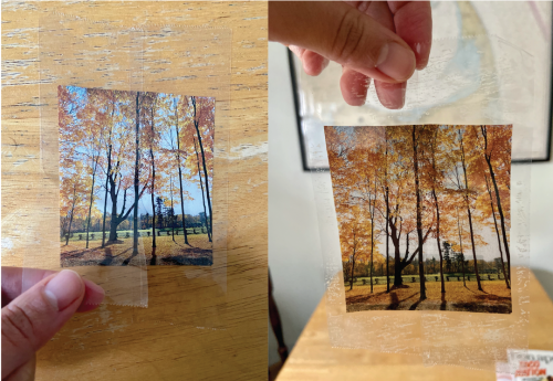 2. Cover your image side with packing tape. Make sure your tape is sticking to the side with the image.