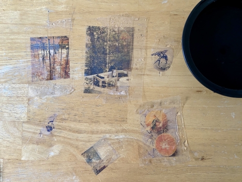 4. Peel/rub the paper off of your images. Play around with the soak times. The longer you leave your images in the water, the easier it will be to peel the paper off. Soaking for a shorter period of time will leave more of the paper on your image.
