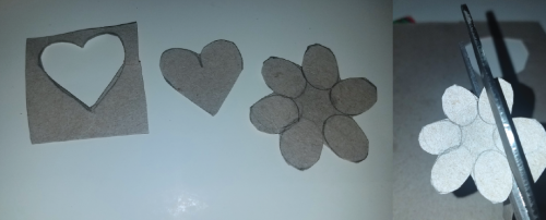 Hearts and flower shape cut-outs.