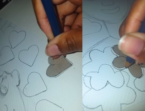 1. Draw or trace your shapes and designs on your cardboard. The bigger they are the easier they will be to cut. Think about shapes and designs and how they can be used to communicate ideas.
