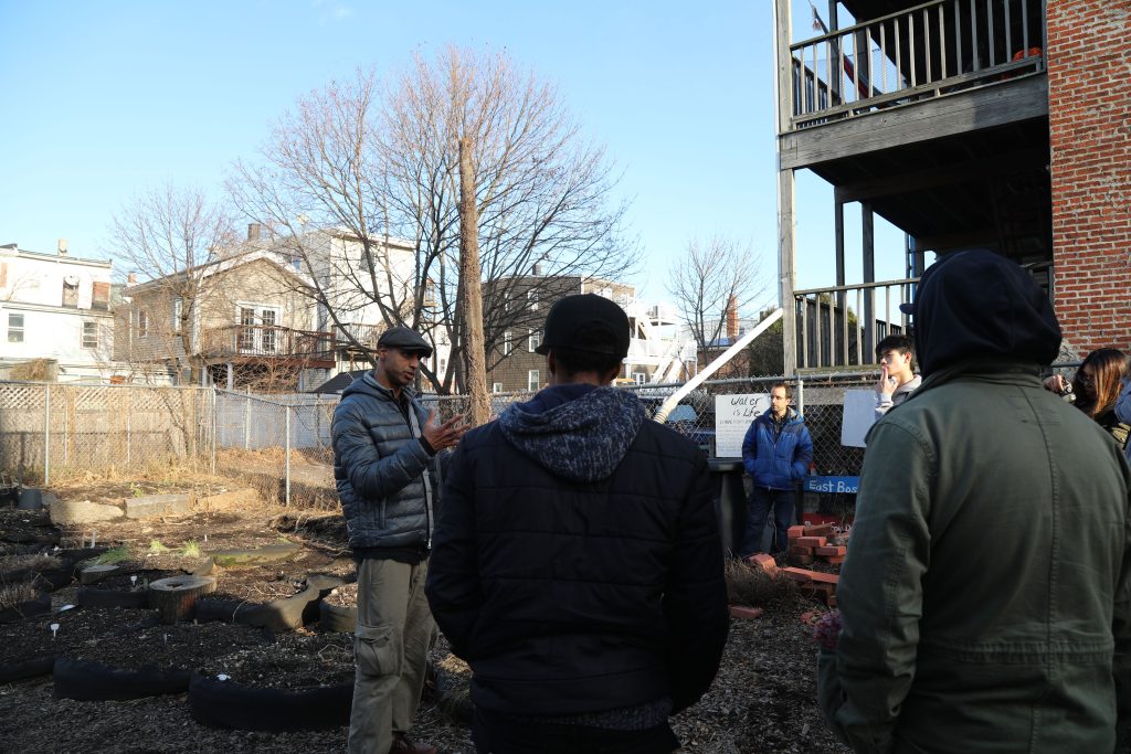 After spending time with the teens and staff in the Zumix Radio Lab and Beatmaking Studio, we made for Eastie Farms, barely a block over. Director Kannan Thiruvengadam met us and talked the group through the inspirational history and many features of the publicly owned urban farm.