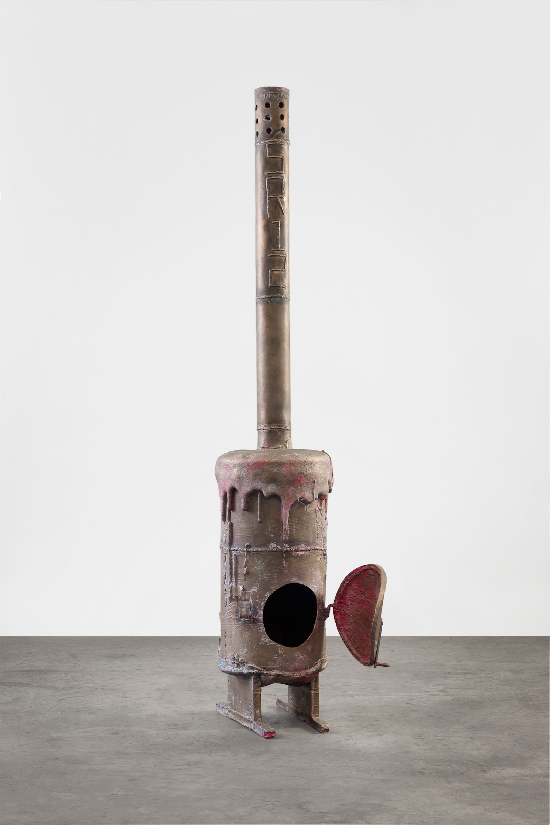 Sterling Ruby, STOVE 3, 2012. Bronze and paint, 74 3/4 × 14 1/4 × 18 inches (189.9 × 36.2 × 45.7 cm). de la Cruz Collection, Miami. Courtesy Sterling Ruby Studio, Los Angeles. Photo by Robert Wedemeyer. © Sterling Ruby