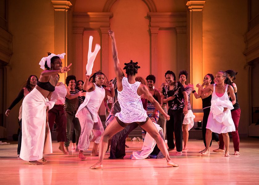 Originally organized by writer Eva Yaa Asantewaa, the collective Skeleton Architecture first came together to perform at Danspace Project last fall, around the theme of dance as a healing force. Inspired by the Audre Lorde essay “Poetry is Not a Luxury,” the evening was organized to “highlight the power of Black womyn within community.”