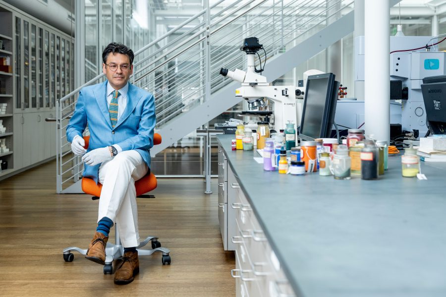 Narayan Khandekar brings a different perspective on painting, its surfaces, and the study of color pigments in his field as curator of the one-of-a-kind Forbes Pigment Collection at Harvard Art Museums, which includes more than 3,000 pigments from around the world, and director of the Straus Center for Conservation and Technical Studies.