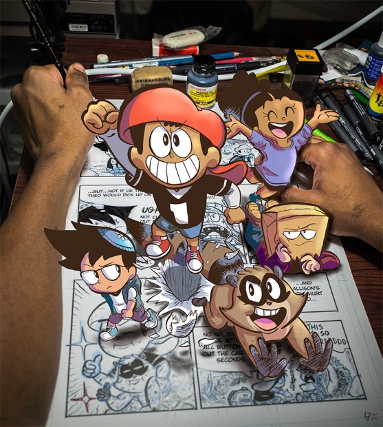 LJ-Baptiste is an art educator and cartoonist from Boston. He has collaborated with media giants such as Google, Hasbro, and PBS to produce essential works of art. He is best known for his ongoing comic book series, COMIXSCAPE, which features the adventures of a bright-eyed, perpetually preteen boy and his raccoon sidekick. Whether it’s work in animation, graphic apparel designs, or COMIXSCAPE, LJ’s art can be described as distinctive, masterful, and captivating. When it comes to visual communication, LJ prioritizes authenticity, details, and positive messages.