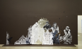 There’s a good chance you’ve encountered Swoon’s work before: her intricately cut, life-sized portraits have covered abandoned buildings and warehouses in cities around the world. Often found in beautiful states of decay, her wheat-pasted installations are populated by realistically rendered people going about everyday activities in a cityscape of her own invention.