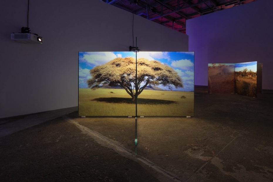 In addition to Delphine, the Watershed features a recent sculptural video installation, A Runaway World, focused on the lives and worlds of species on the verge of extinction and the illicit economies that threaten their survival. Produced in Kenya in 2016 and 2017, A Runaway World is staged within a unique architectural environment of free-standing screen structures designed by the artist.