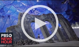 In summer 2021, the ICA Watershed featured a newly commissioned, monumental sculpture by acclaimed artist Firelei Báez. In her largest sculptural installation to date, the artist reimagined the archeological ruins of the Sans-Souci Palace in Haiti as though they were revealed in East Boston after the sea receded from the Watershed floor. The Watershed’s location—in a working shipyard and as a trade site and point of entry and home for immigrants over decades—provided a pivotal point of reference. Báez embedded Sans-Souci within the geological layers of Boston, where histories of revolution and independence are integral to the city’s identity. This site-specific installation invited visitors to traverse passageways and travel through time, engaging with streams of influence and interconnectedness. The work’s intricately painted architectural surfaces include symbols of healing and resistance, patterning drawn from West African indigo printing traditions (later used in the American South), and sea growths native to Caribbean waters. Báez’s sculpture points to the centuries-long exchanges of ideas and influence between Europe, the African continent, and the Americas.