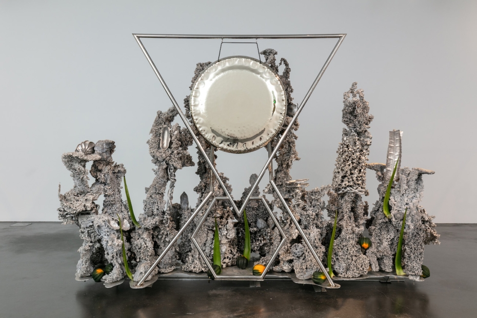 This exhibition presents a selection of recent sculptures and paintings by Maravilla. At its center is Mariposa Relámpago (Lightning Butterfly), a newly commissioned work for the ICA Watershed and the artist’s largest sculpture to date. Mariposa Relámpago is part of the artist’s Disease Thrower series—sculptures that incorporate natural materials, handmade objects, and items collected by the artist while retracing his migratory route to become shrines and healing instruments. Every sculpture includes metal gongs that are activated by the artist during public sound baths to deploy the powers of vibrational sound as a form of healing. Maravilla’s artworks contain a cosmology of potent symbols and objects that connect the artist’s personal journey with ancient practices of the indigenous Mayan peoples; diverse spiritual and folk beliefs; and contemporary crises of disease, ecology, and war. We invite you to explore this exhibition and come back for one of the many programs offered in collaboration with East Boston organizations and individuals who support community healing and well-being.