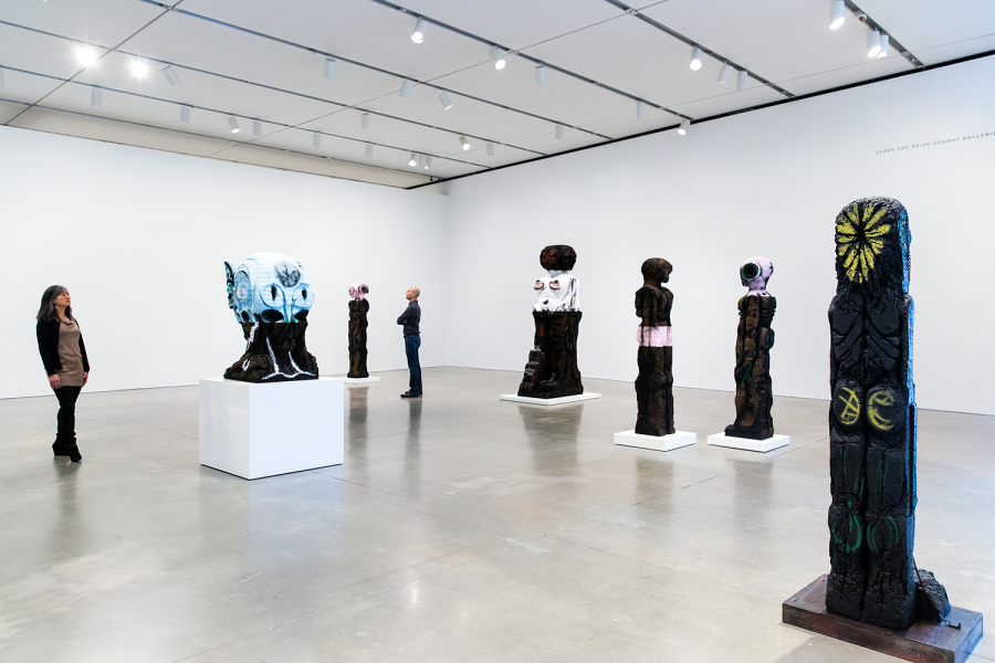 Since the early 1990s, Huma Bhabha (born 1962 in Karachi) has developed a distinct visual vocabulary that draws upon a wide variety of influences, including horror movies, science fiction, ancient artifacts, religious reliquary, and modernist sculpture. The largest survey of the artist’s work to date, Huma Bhabha: They Live encompasses sculpture, drawing, and photography, with a special focus on Bhabha’s engagement with the human figure.