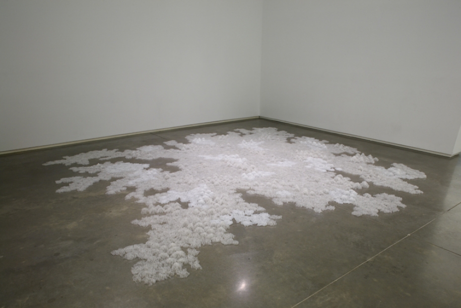 Rooms dedicated to materials and process celebrate artists’ capacity to elicit the wondrous from the mundane. Works from Tara Donovan’s tape installation Nebulous to Damián Ortega’s explosion of a 35mm camera highlight the transformative use of common and found materials. Others incorporate everyday actions such as knotting, wrapping, or tying into their artistic practice, as in Lynda Benglis’s knot sculpture Sierra and Sheila Hicks’s stacked bundles of thread in Banisteriopsis II. Finally, portraiture—a noted strength in the ICA’s collection—forms a third means of exploring the everyday within the exhibition, in recently acquired works by Anthony Hernandez, Sanya Kantarovsky, Robert Pruitt, and Lynette Yiadom-Boakye. All of these artists have creatively engaged with their daily worlds, inviting others to partake in the beauty, dignity, and reality of the everyday.