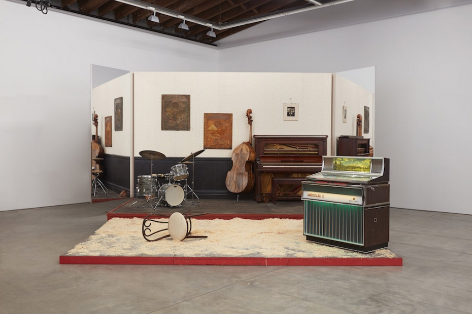 In all aspects of his work, Moran’s creative process is informed by one of the essential tenets of jazz: the “set,” in which musicians come together to engage in a collaborative process of improvisation, riffing off of one another to create the musical experience. The exhibition will highlight his mixed-media set installations based on storied jazz venues from past eras, including STAGED: Savoy Ballroom 1 and STAGED: Three Deuces (both 2015), sculptural vignettes that were his acclaimed contributions to the 2015 Venice Biennale. The presentation includes the premiere of a new sculptural commission from this series that takes inspiration from the celebrated New York jazz venue Slugs’ Saloon, which was open from 1964 to the early 1970s. Also featured will be a selection of Moran’s most recent charcoal drawings and several projected media works from his long-standing collaborations, or sets, with artists including Stan Douglas, Joan Jonas, and Glenn Ligon. In-gallery performances will also be orchestrated during the run of the show.