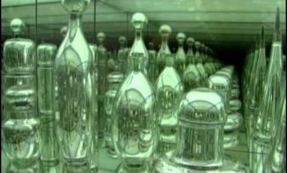 In McElheny’s diverse body of work, the infinite crops up again and again: from intricate patterns in glass, such as the dizzying spirals that grace a set of handblown plates, to the endless reflection of mirrored surfaces, as seen in works like Czech Modernism Mirrored and Reflected Infinitely. He has also repeatedly drawn inspiration from the enormity of the cosmos, gaining a working knowledge of astronomy through a long-term collaboration with the cosmologist David Weinberg. Their partnership has resulted in multiple artworks picturing the origins of the universe, with particular attention to the theory of the Big Bang. Through film, prints, and, most spectacularly, a room-sized sculptural installation, McElheny combines iconic mid-century modernist design with scientific theories, extending the ambitions of each.