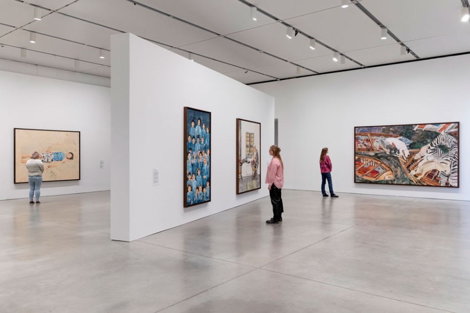 New York–based artist María Berrío (born 1982 in Bogotá, Colombia) crafts her large-scale paintings through a unique, meticulous process of collaging torn pieces of Japanese paper with watercolor to create riveting, magical scenes. Spurred by contemporary social and political realities, the artist lists poetry, folklore, and the realms of magic as her sources of inspiration to imagine alternative views of present-day realities, especially those faced by migrants, women, and children.