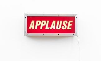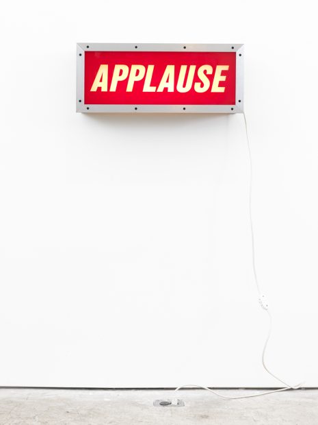 A graduate of the Massachusetts College of Art in 1984, Pierson is known for his photographs, sculptures, and text-based artworks that often draw on commercial signage and popular culture to explore nostalgia, desire, and disillusion. Applause is a re-creation of the sign used in television studios that, when lit, directs audiences to clap at pre-determined moments during tapings of a program. A kind of instructional device, Applause is a work of irony—drawing attention to the gulf between what one says and means. Pierson’s sculpture encourages viewers to question our emotional reactions to signs and signals.