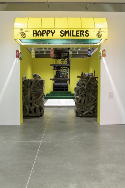 Nari Ward: Sun Splashed is the largest survey of the artist’s work to date. Emerging alongside a notable group of black artists in New York City in the 1990s, Nari Ward (b. 1963 in St. Andrew Parish, Jamaica) actively engages with local sites—their histories, communities, and economies—to create spectacular, ambitiously scaled artworks out of unlikely materials. He derives inspiration from his immediate environment, incorporating found objects gathered in and around urban neighborhoods and embracing varied cultural references. Working in sculpture, collage, photography, video, installation, and performance, Ward captures the makeshift qualities of everyday life and imbues his production with a visceral relationship to history and the real world. The exhibition includes artworks made from soda pop, shoelaces, shopping carts, and a fire escape, materials that speak to the artist’s distinctive experimentation. Nari Ward: Sun Splashed focuses on vital points of reference for Ward, including his native Jamaica, citizenship, and migration, as well as African-American history and culture, to explore the dynamics of power and politics in society.