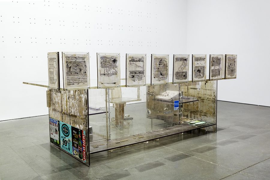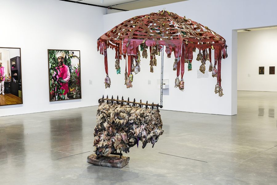 Nari Ward: Sun Splashed is the largest survey of the artist’s work to date. Emerging alongside a notable group of black artists in New York City in the 1990s, Nari Ward (b. 1963 in St. Andrew Parish, Jamaica) actively engages with local sites—their histories, communities, and economies—to create spectacular, ambitiously scaled artworks out of unlikely materials. He derives inspiration from his immediate environment, incorporating found objects gathered in and around urban neighborhoods and embracing varied cultural references. Working in sculpture, collage, photography, video, installation, and performance, Ward captures the makeshift qualities of everyday life and imbues his production with a visceral relationship to history and the real world. The exhibition includes artworks made from soda pop, shoelaces, shopping carts, and a fire escape, materials that speak to the artist’s distinctive experimentation. Nari Ward: Sun Splashed focuses on vital points of reference for Ward, including his native Jamaica, citizenship, and migration, as well as African-American history and culture, to explore the dynamics of power and politics in society.